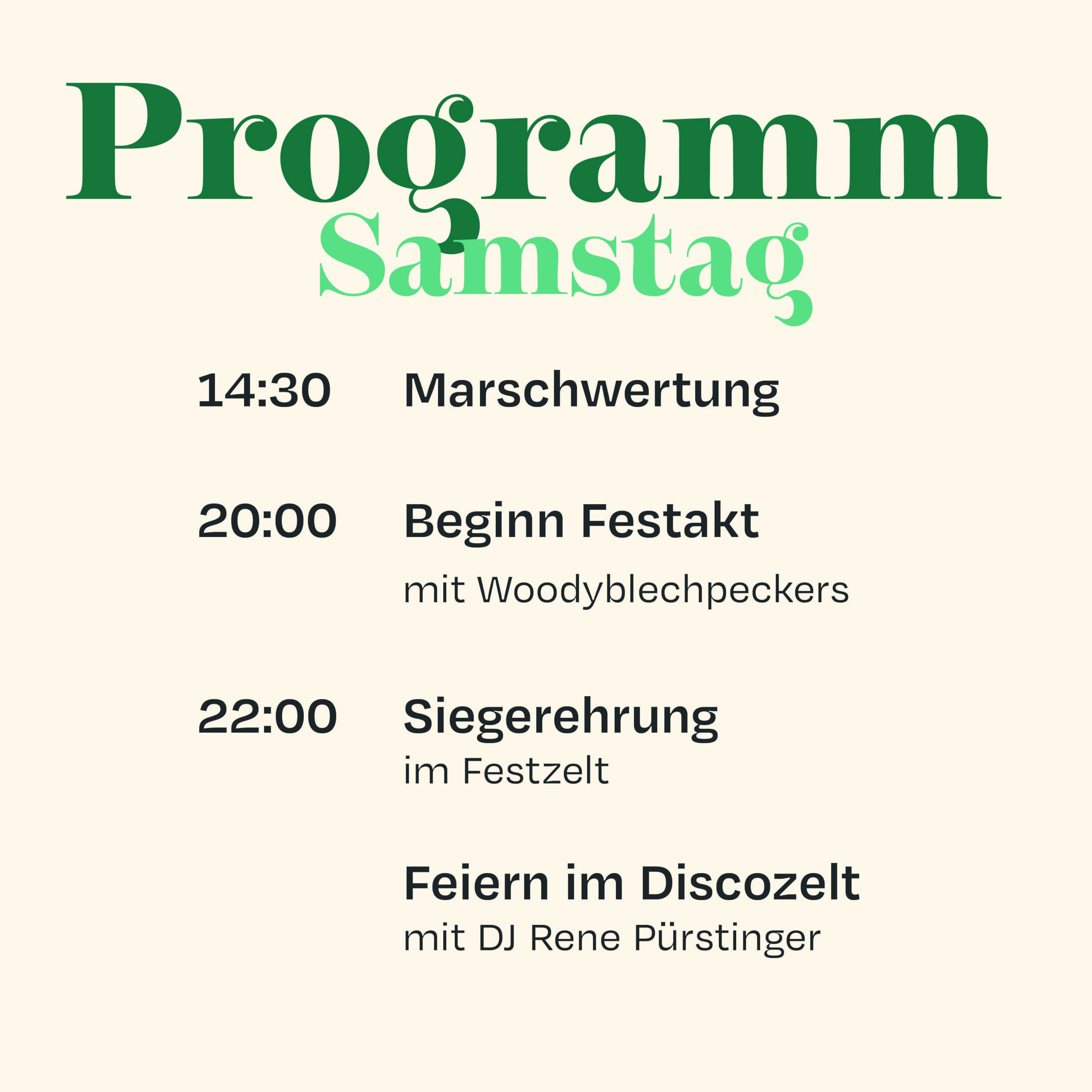 Im Anschluss an die Marschwertung folgt der traditionelle Festakt mit dem Gesamtspiel aller MusikerInnen und den Festansprachen. Ein weiterer Höhepunkt folgt gegen 22 Uhr – die Verkündung der Ergebnisse.